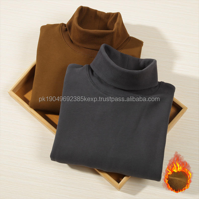 เสื้อกันหนาวแขนยาวเข้ารูปแบบลำลองสำหรับผู้ชาย, เสื้อกันหนาวคอเต่าผ้ากำมะหยี่หนาและให้ความอบอุ่น400กรัม