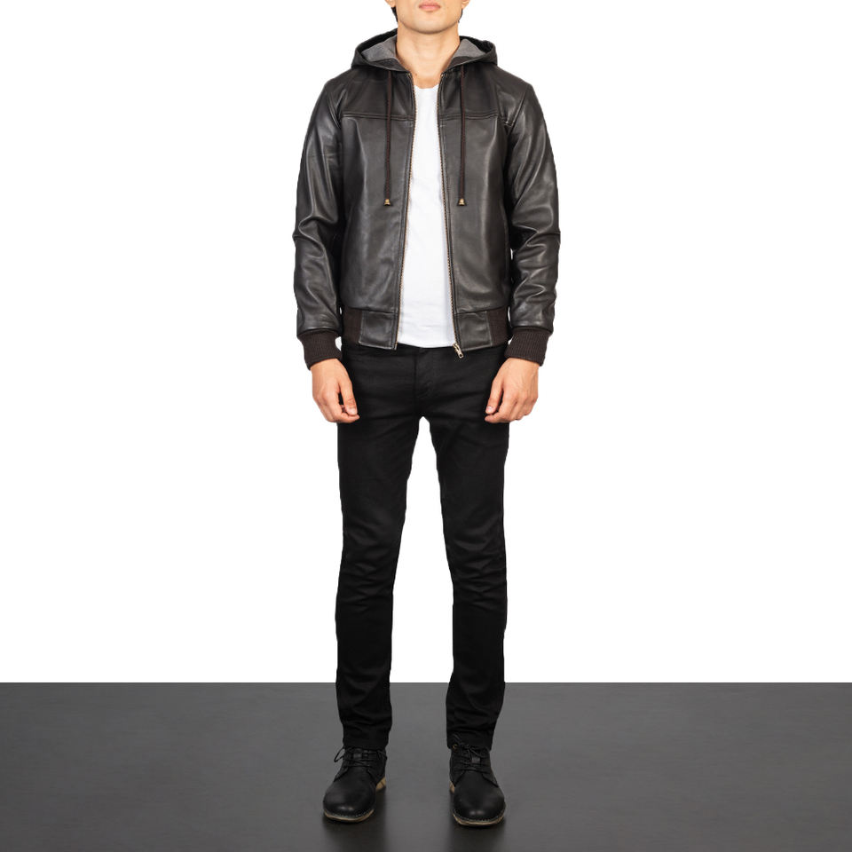 แจ็คเก็ตหนังผู้ชายมีฮู้ดแฟชั่นฤดูหนาว แจ็คเก็ตหนัง PU ผู้ชายมีฮู้ดสไตล์ไฮสตรีทบุซับในผ้าไหม รุ่นปี 2026