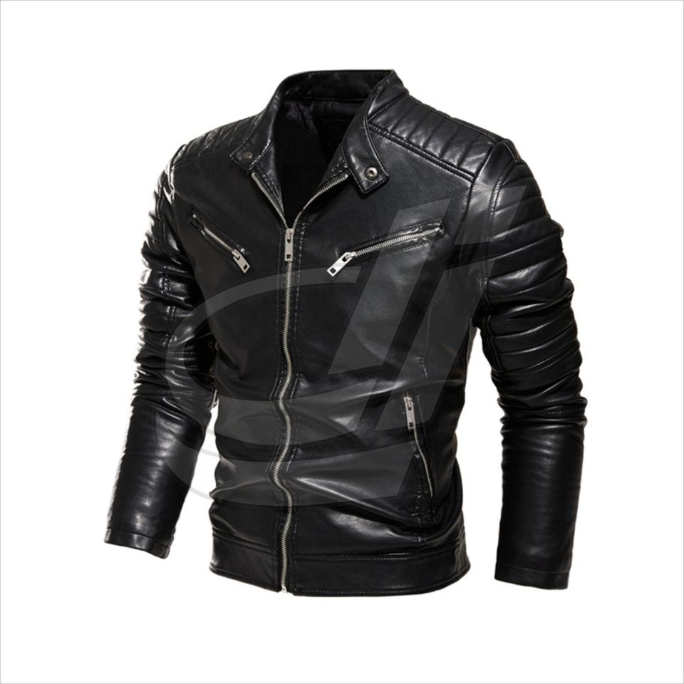 แจ็กเก็ตหนังของผู้ชาย,เสื้อแจ็กเก็ตหนังพียูสีพื้นผ้ากำมะหยี่สำหรับขี่มอเตอร์ไซค์ฤดูหนาว