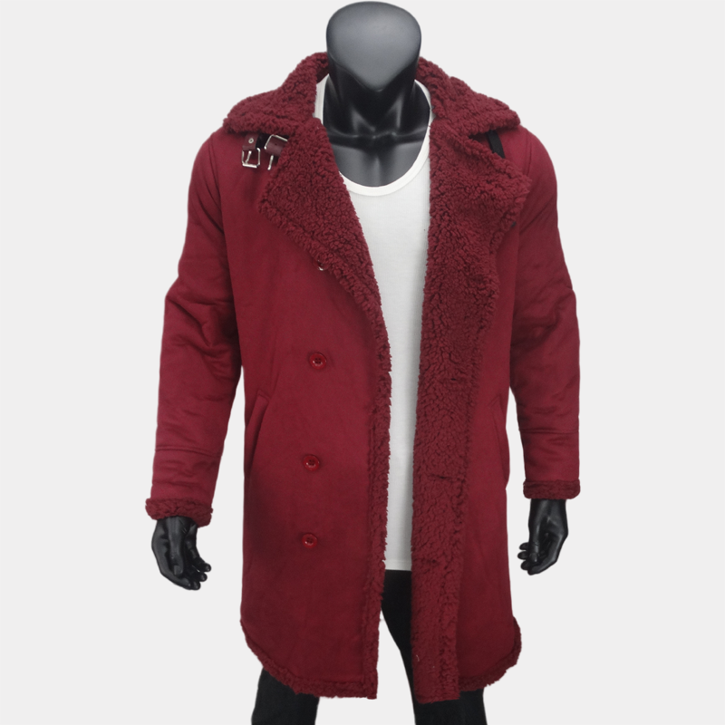 เสื้อโค้ทเทรนช์โค้ทยาวสำหรับผู้ชาย ผ้าหนังกลับเทียม แต่งขนเฟอร์ กระดุมสองแถว ให้ความอบอุ่นและป้องกันความหนาว มีไซส์ S-5XL