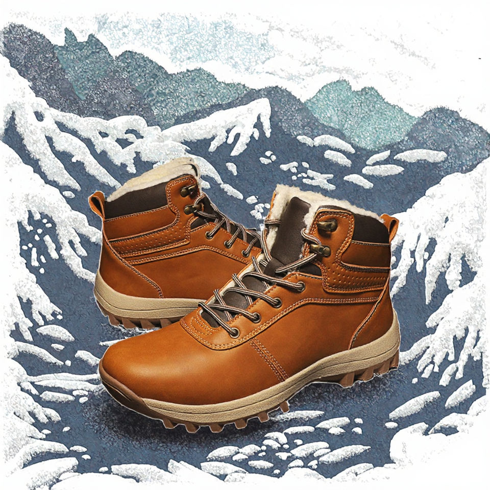 รองเท้าบูทเดินป่าสำหรับผู้ชายแบบหุ้มข้อกลาง ฤดูหนาว สไตล์เรโทร กันลื่น กันน้ำ วัสดุ PU ด้านบนบุขนนุ่ม พื้นรองเท้าด้านนอกทำจากยาง ป้องกันนิ้วเท้าเย็น สวมใส่สบาย