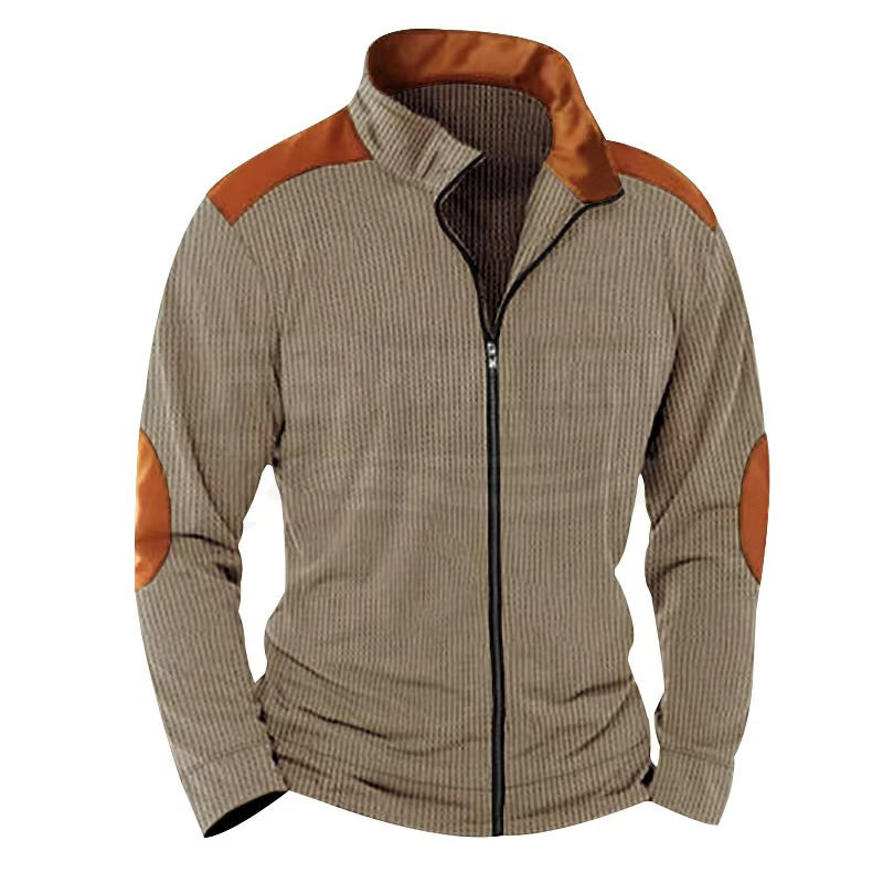 เสื้อแจ็คเก็ตแขนยาวผู้ชายทรงสลิมฟิตสำหรับฤดูหนาว ปักลายที่ข้อมือด้านหน้า คอตั้ง ปิดกระดุมเม็ดเดียว ผ้าฟลีซสีพื้น/ลายตัวอักษร