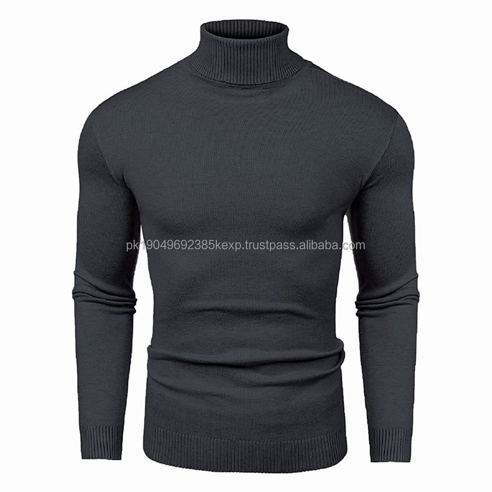 เสื้อสเวตเตอร์คอเต่าของผู้ชายสำหรับฤดูหนาวเสื้อกันหนาวแบบสวมหัวคอเต่าสีพื้น