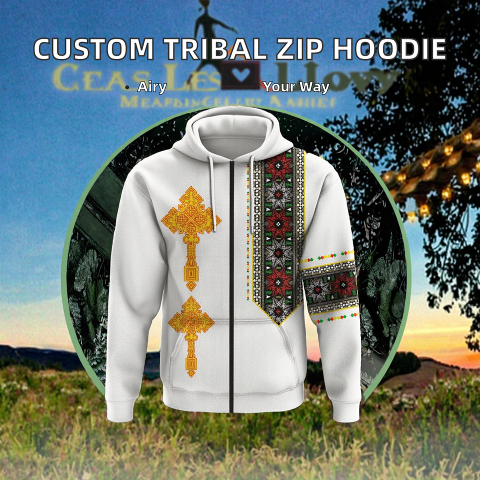 เสื้อฮู้ดดี้ซิปหน้า คอโอ ผ้าโพลีเอสเตอร์ สำหรับฤดูหนาว ผู้ชาย ผู้หญิง ลายชนเผ่าเอธิโอเปีย ดีไซน์เนอร์ ออกแบบมาเพื่อความสบาย ไซส์พลัส มีกระเป๋า ระบายอากาศได้ดี สั่งทำได้