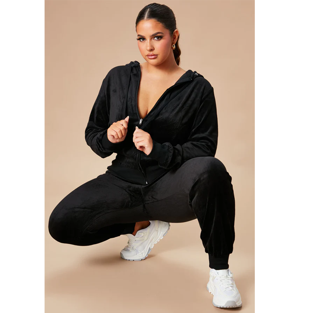 เสื้อแจ็กเก็ตผ้ากำมะหยี่เอวยางยืดมีซิปสำหรับผู้หญิงมาใหม่ฤดูหนาวพร้อมกระเป๋ากางเกงยาวสองชิ้น