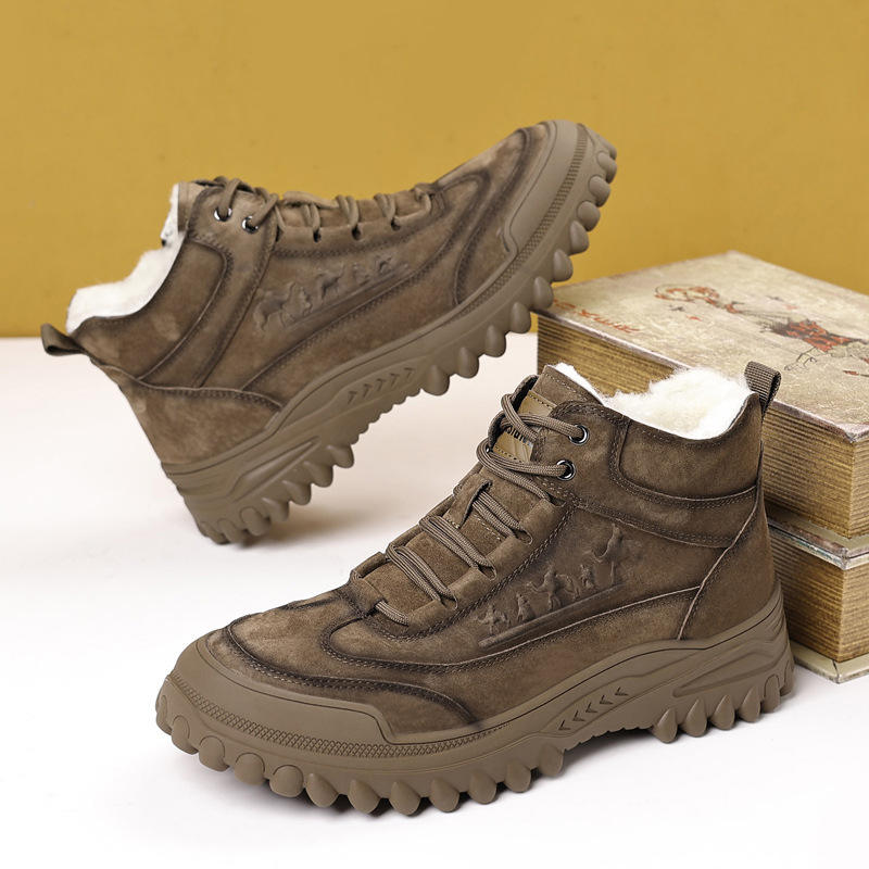 รองเท้าบูทหนังแท้คุณภาพสูงสำหรับฤดูหนาว บุขนอุ่น สไตล์ทันสมัย เหมาะสำหรับกิจกรรมกลางแจ้ง กันลื่น ใส่สบาย