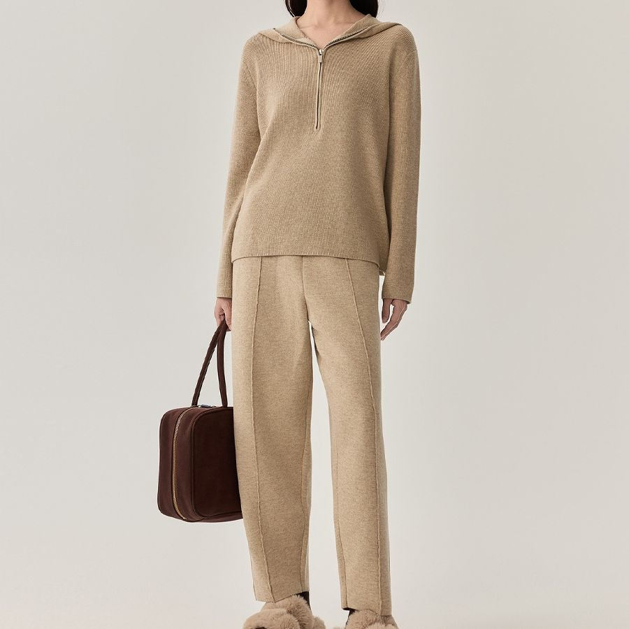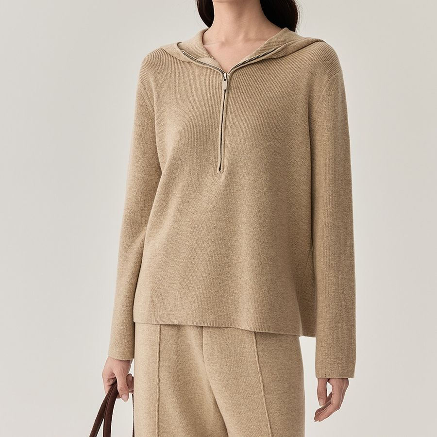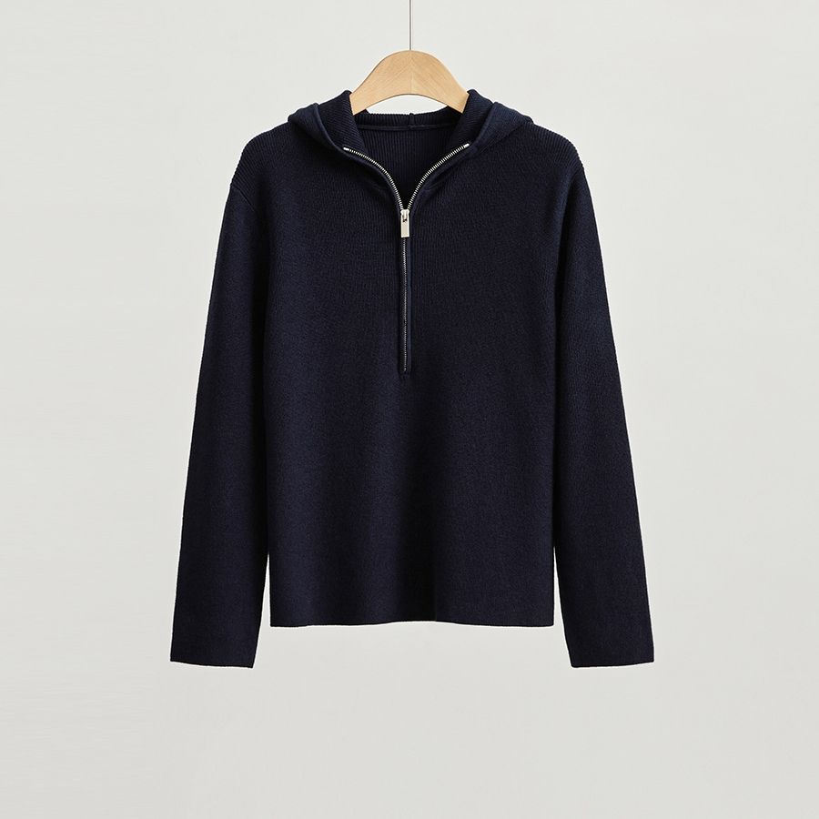Winter New Product 100% Cotton Knitted Solid Color Fashion Long Sleeve Hoodie Coat with Front Logo Customizable Design