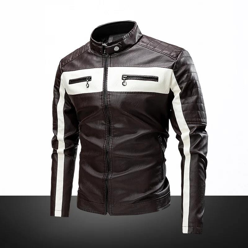 แจ็กเก็ตหนังผู้ชายแบบเต็มปกตั้งสำหรับฤดูหนาวแจ็คเก็ตหนังผู้ชายแจ็คเก็ตขี่มอเตอร์ไซค์ไซส์ใหญ่และวัยรุ่นใหม่