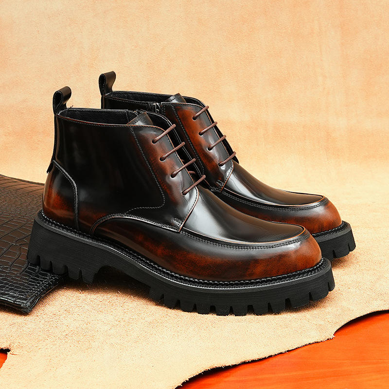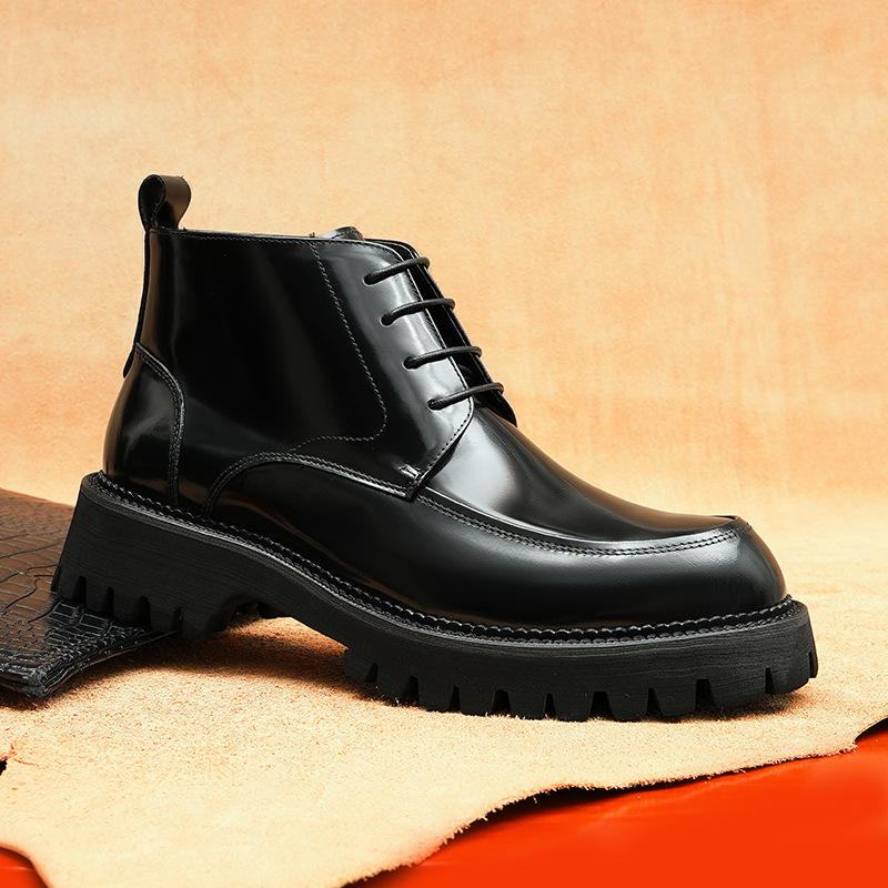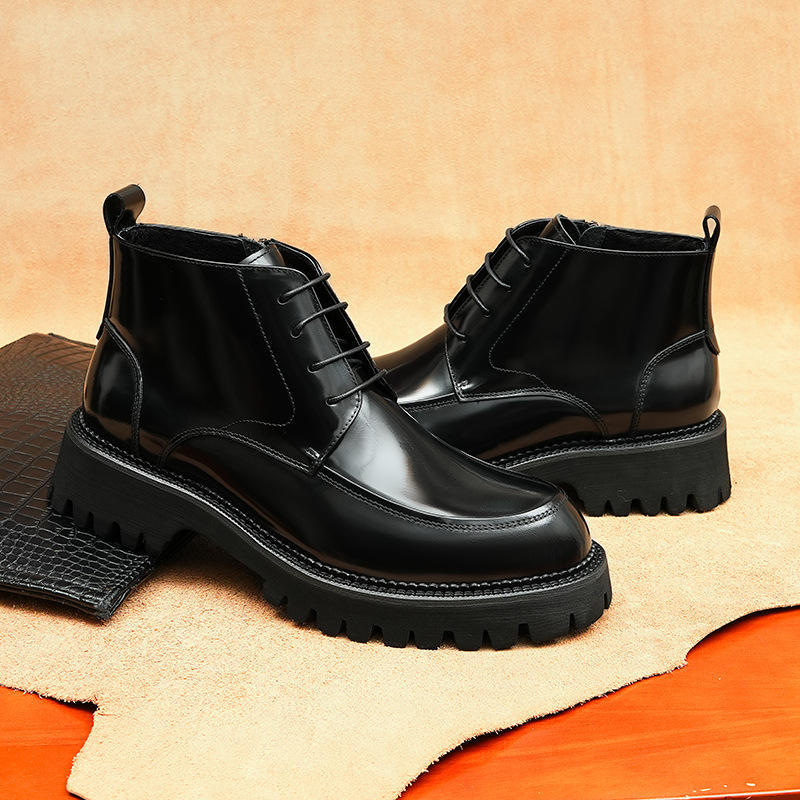 รองเท้าบูททำงานกลางแจ้งทรงสูงแบบคลาสสิกสไตล์ใหม่สำหรับฤดูหนาว สำหรับผู้ชาย กันน้ำ หนังแท้ เพิ่มความสูง แบบลำลอง ใส่ได้หลายโอกาส สำหรับเล่นกีฬา