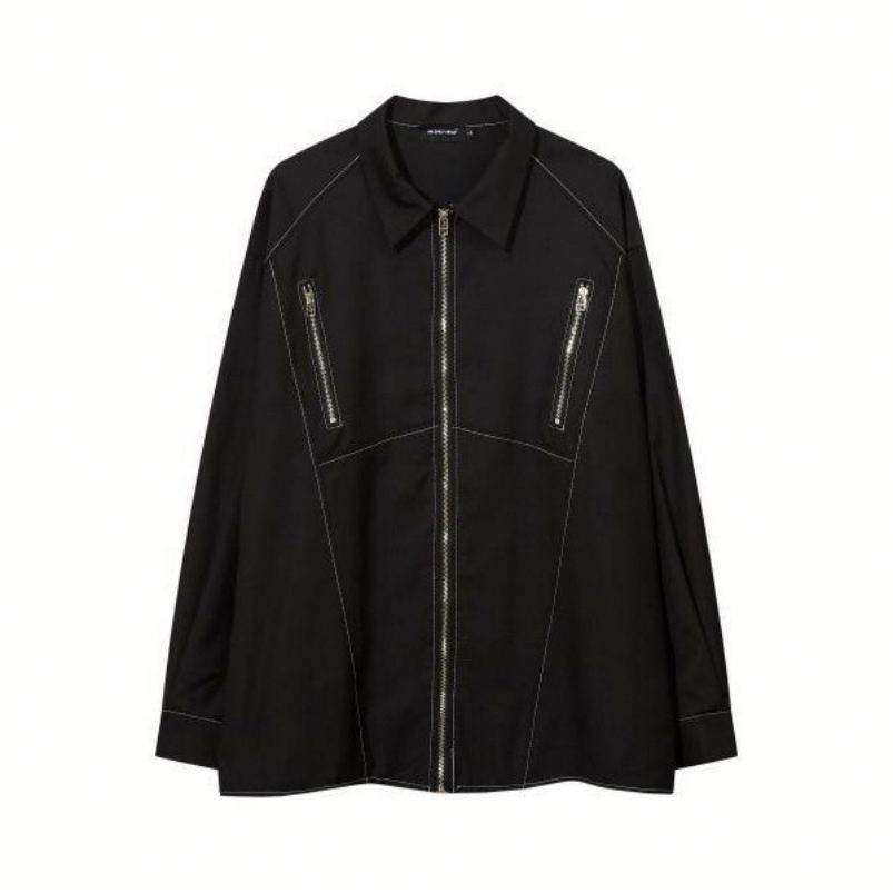 แจ็กเก็ตบุผ้าวินเทจใหม่สำหรับฤดูหนาวพร้อมซิปสีทึบดีไซน์เฉพาะตัวเสื้อแจ็คเก็ตแขนยาวสำหรับกระเป๋าออกแบบโลโก้ได้ตามต้องการ