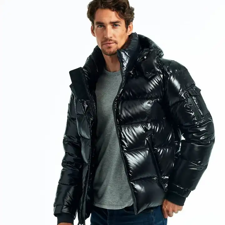 เสื้อโค้ทขนเป็ดมีฮู้ดสำหรับผู้ชายเสื้อแจ็คเก็ตหนังขนเป็ดมีฮู้ดสำหรับใส่กลางแจ้งมีโลโก้ได้ตามต้องการ