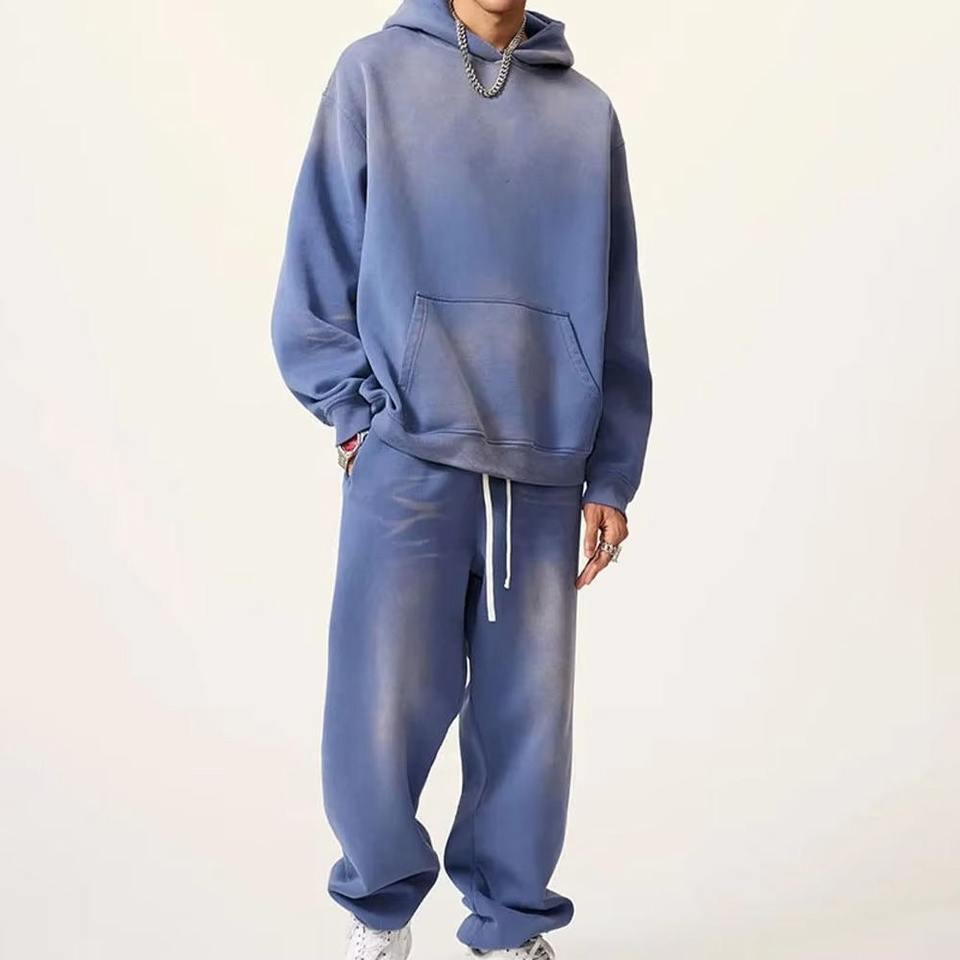 ชุดวอร์ม2ชิ้นสำหรับผู้ชายชุดเสื้อผ้า100% มีฮู้ดและกางเกงขายาวสั่งโลโก้ได้