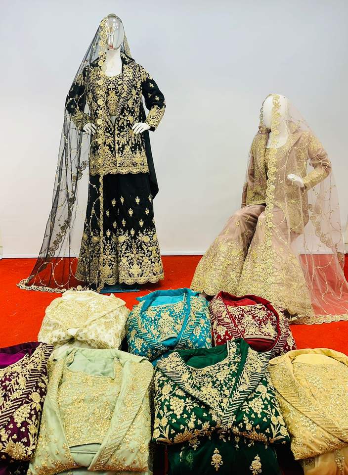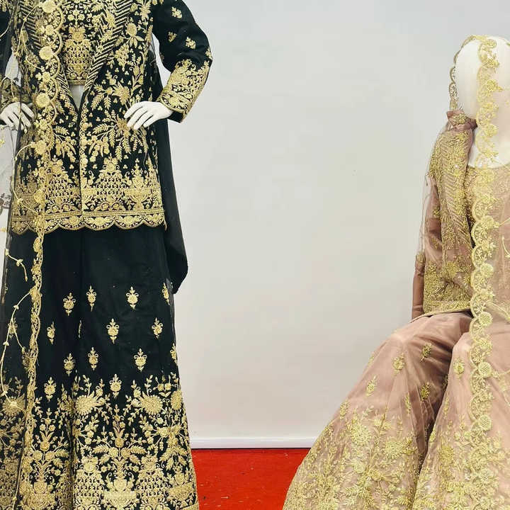 ชุดคอลเลกชั่นสำหรับเจ้าสาวปากีสถานชุดกระโปรงหินจาร์กันสำหรับเจ้าสาวเสื้อเบลเซอร์แบบหนักสุทธิ lehenga dupatta 9สี5แบบ