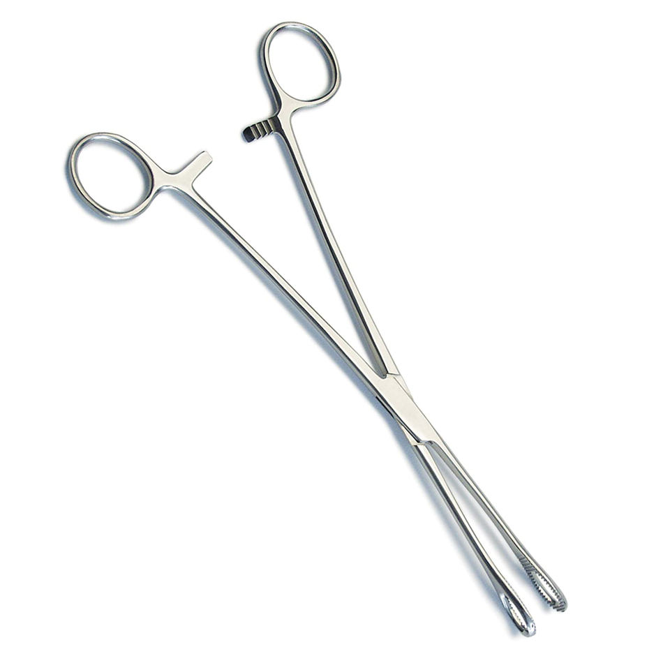 คีมคีบรกแกจและไข่ 28 ซม. แบบโค้ง ทำจากเหล็กกล้าไร้สนิม อุปกรณ์นรีเวชวิทยา คีมผ่าตัดมดลูกแบบใช้มือ
