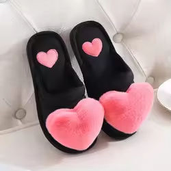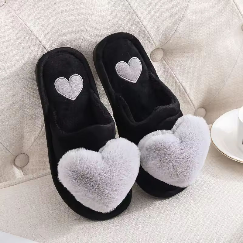 สไลเดอร์ในร่มรูปหัวใจทำจากผ้ากำมะหยี่ขนยาวสำหรับผู้หญิง EVA กันน้ำออกแบบโลโก้ได้ตามต้องการสำหรับบ้านอบอุ่น
