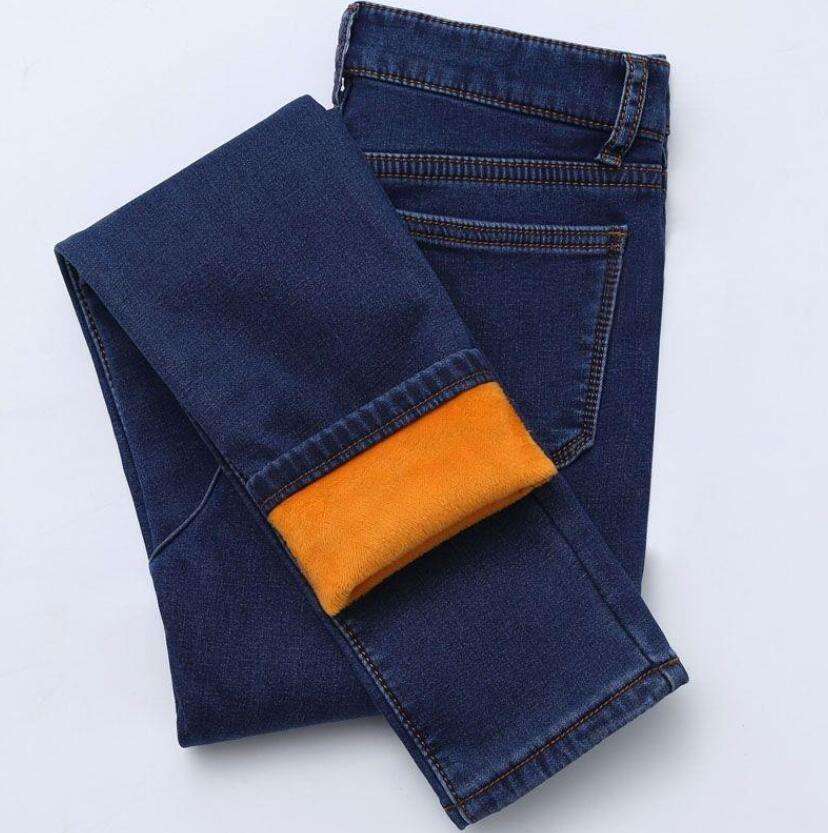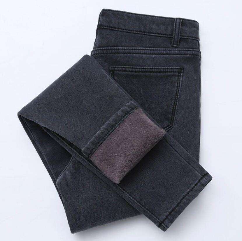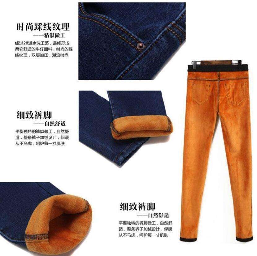 กางเกงยีนส์เอวสูงหนาผ้ากำมะหยี่ขนยาวสำหรับผู้หญิงทรงสลิมฟิตกางเกงขาเล็กและบางสำหรับนักเรียนฤดูหนาว