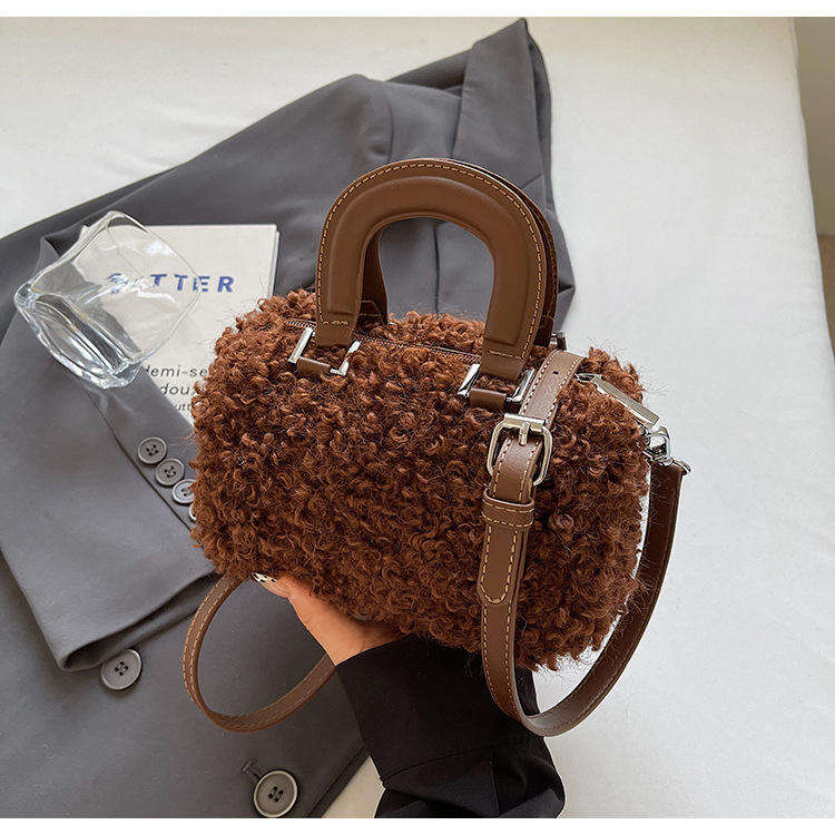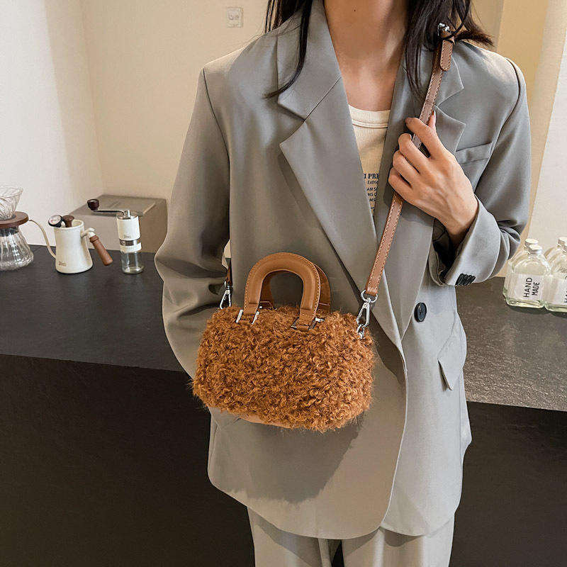 กระเป๋าถือแฟชั่นใหม่สำหรับผู้หญิงปี 2026 แบบมีซิปบุขนหนานุ่ม สไตล์เกาหลี ดีไซน์เฉพาะกลุ่ม สะพายไหล่เดียวหรือสะพายข้างได้