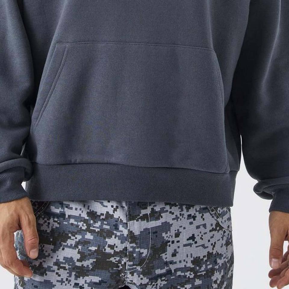 เสื้อฮู้ดผู้ชายแบบสวมหัวสำหรับฤดูหนาว ผ้าฝ้ายและโพลีเอสเตอร์ พิมพ์ลายดิจิทัล ปักโลโก้ได้ ทรงโอเวอร์ไซส์ ไหล่ตก ย้อมสีพื้น