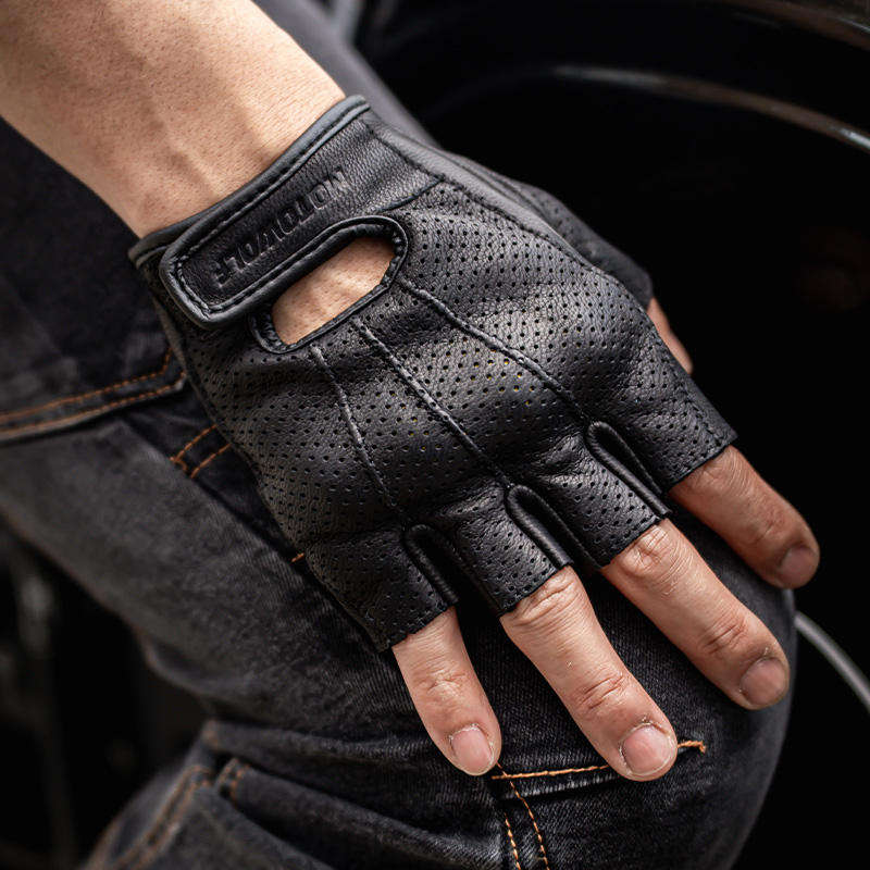 ถุงมือขี่มอเตอร์ไซด์ไฟฟ้าแบบย้อนยุคสำหรับฤดูหนาวถุงมือมอเตอร์ครอสแบบครึ่งนิ้วทำจากโลหะหลอมเหลวสำหรับการทดสอบการกระเด็น