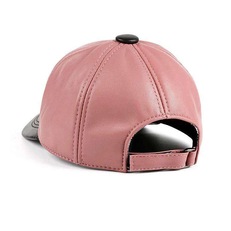 หมวกเบสบอลหนังแท้สีลูกกวาดสีชมพูสำหรับผู้ชายผู้หญิงหมวกฮิปฮอปสุดอบอุ่นมีลิ้นเป็ดสำหรับใส่ลำลอง