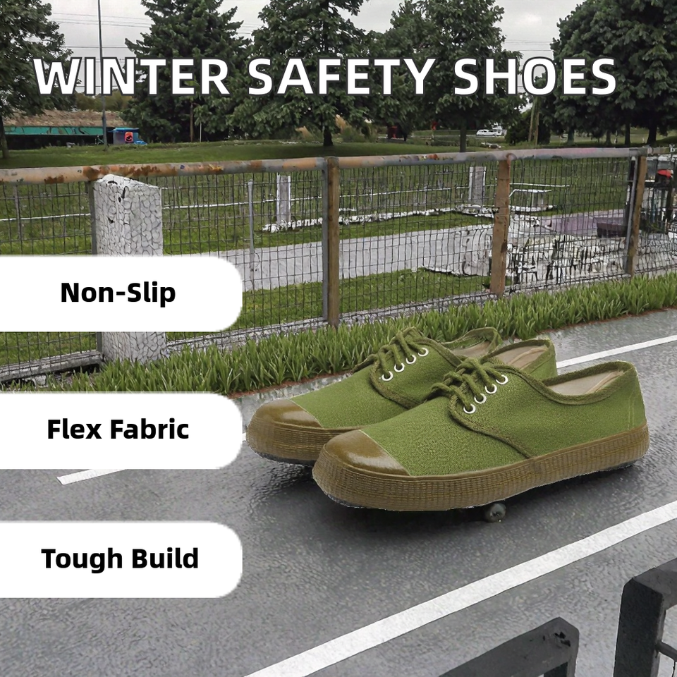 รองเท้าเซฟตี้กันลื่นแบบหุ้มข้อต่ำสำหรับฤดูหนาว พร้อมพื้นรองเท้าด้านในทำจากยางและผ้าสเตรช