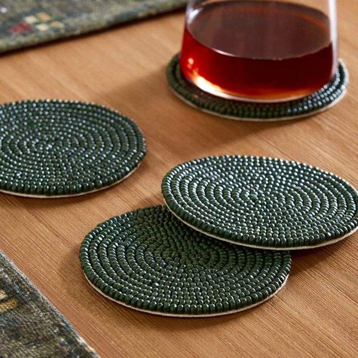 แผ่นรองแก้วปักลายลูกปัดชนิด