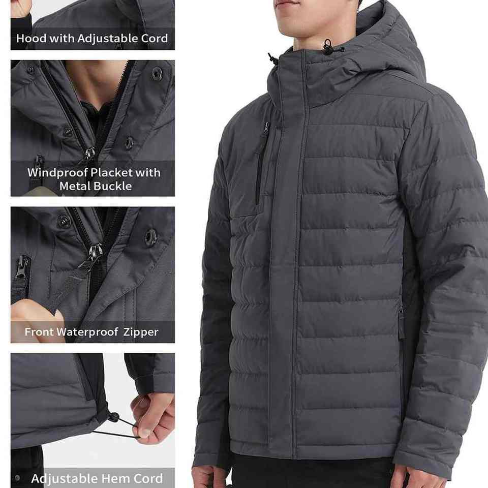 แจ็กเก็ตขนเป็ดกันลมแบบสั้นสำหรับผู้ชายเสื้อแจ็คเก็ตขนเป็ดมีฮู้ดสำหรับผู้ชายแห้งเร็วระบายอากาศ