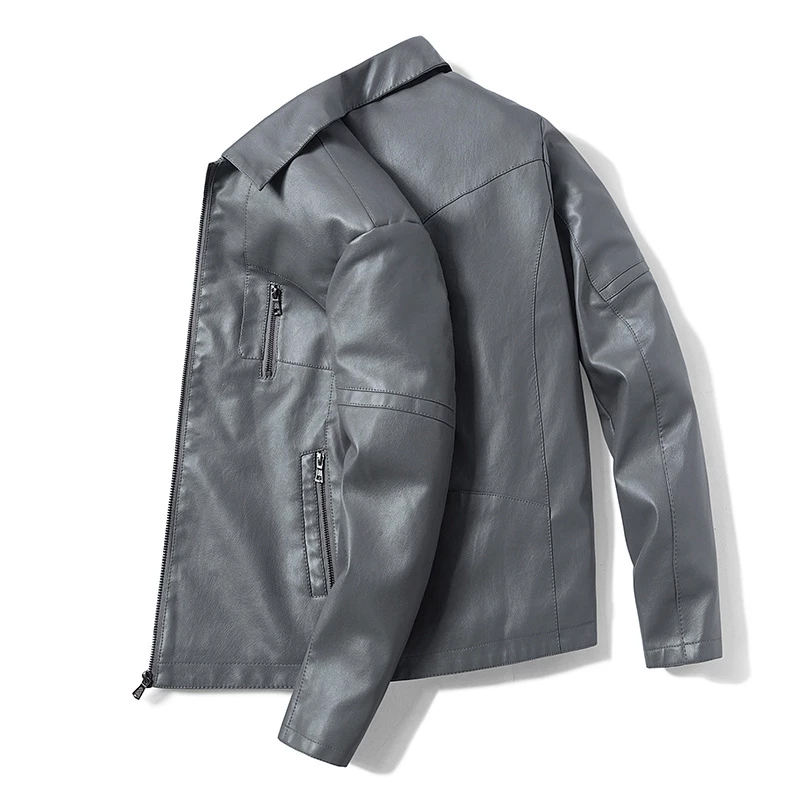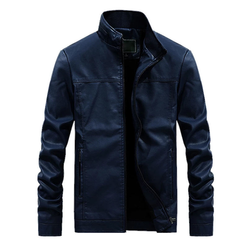แจ็คเก็ตหนังมอเตอร์ไซค์แบบเรียบง่ายสำหรับฤดูหนาว สีพื้น ทรงเข้ารูป สั่งทำได้ คุณภาพสูง คอตั้ง แจ็คเก็ตหนังผู้ชายสำหรับฤดูหนาว