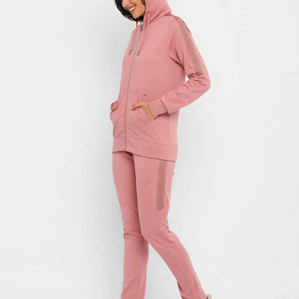 ชุดวอร์มผู้หญิงแบบกำหนดเองได้สำหรับฤดูหนาว ชุด 2 ชิ้น ระบายอากาศได้ดี ทรงหลวม ผ้าไนลอน/คอตตอน ชุดลำลองปักลายขายาว