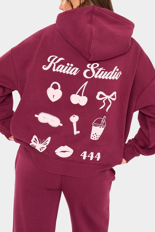 ชุดวอร์มโอเวอร์ไซส์ ปักลาย แบบยาว สีเบอร์กันดีและชมพู สำหรับฤดูหนาว