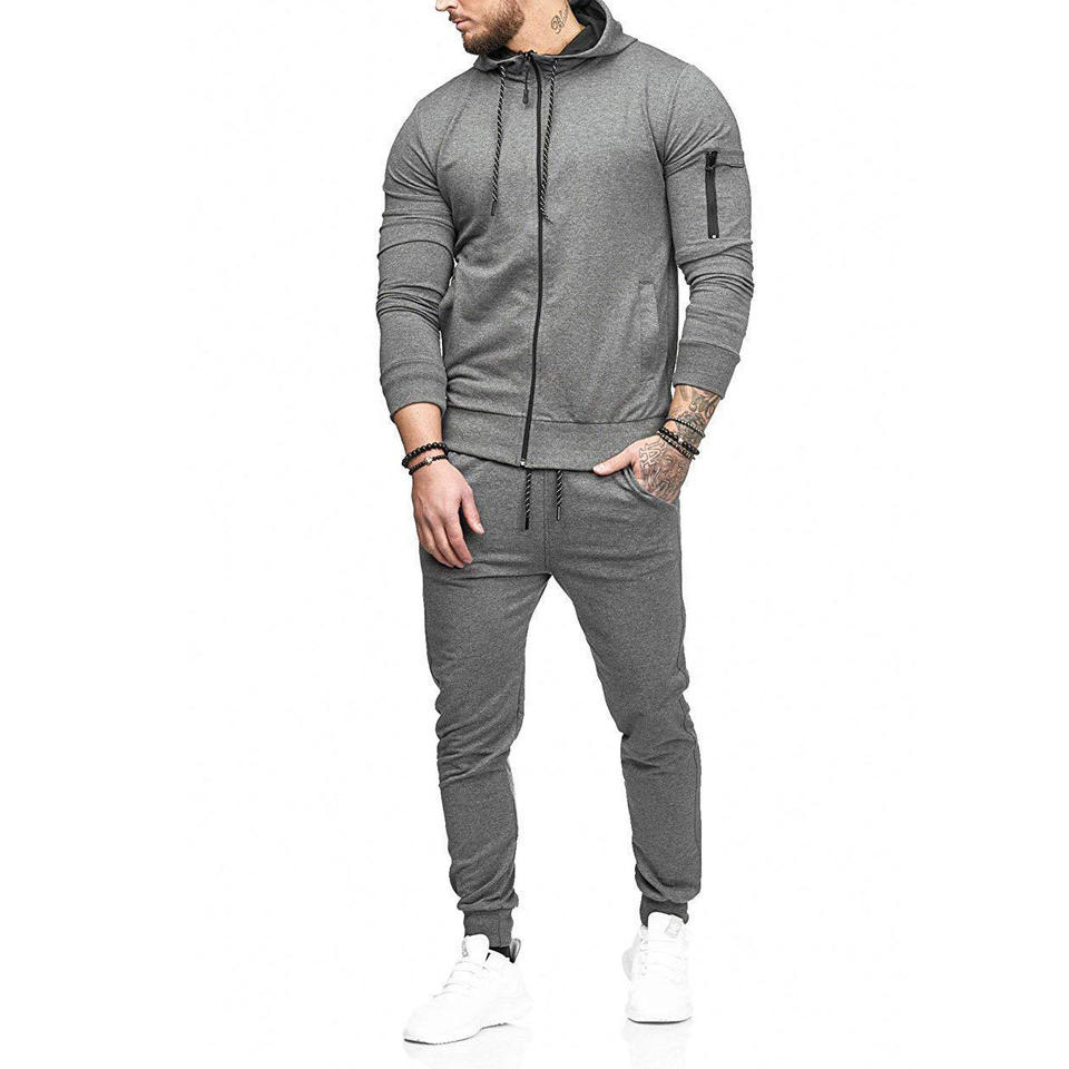ชุดวอร์มกีฬาฤดูหนาวสำหรับผู้ชาย เสื้อฮู้ดแขนยาว กางเกงขายาวทรงจ็อกเกอร์ ผ้าฟลีซเนื้อผ้าฝ้าย 100% สีพื้น