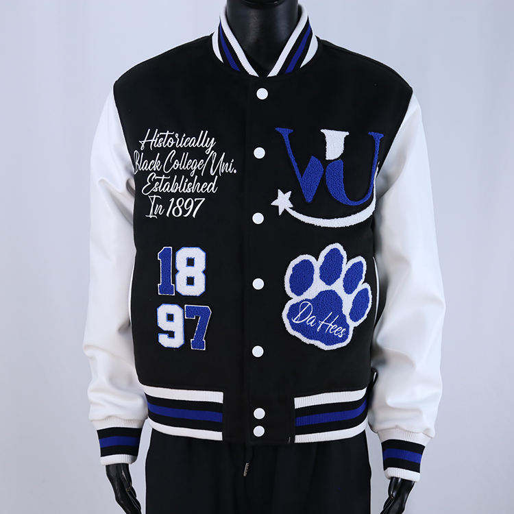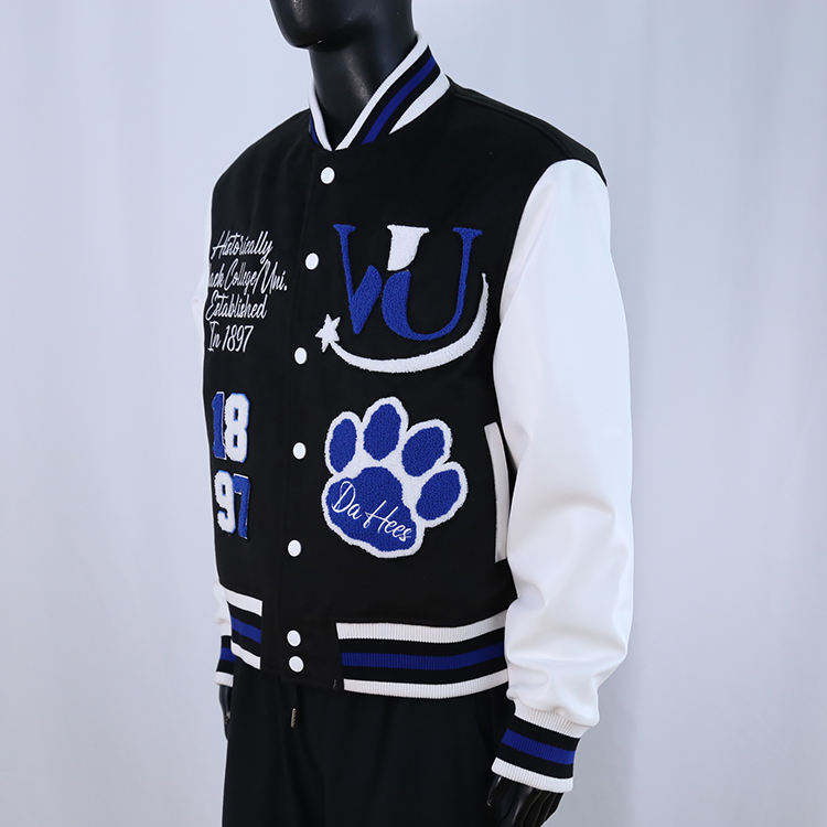 แจ็คเก็ตวาร์ซิตี้สไตล์สตรีทแวร์สำหรับฤดูหนาว งานปักไหมพรม แฟชั่นสุดฮิต สไตล์เท่ พร้อมแพทช์ แจ็คเก็ตวาร์ซิตี้ผ้าขนสัตว์สำหรับผู้ชาย