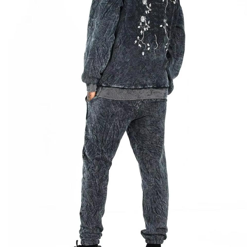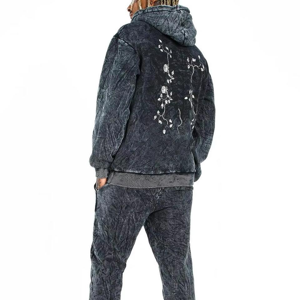 ชุดเซ็ตฮู้ดดี้และกางเกงวอร์มสไตล์วินเทอร์สตรีทแวร์ พิมพ์ลายขาดๆ แต่งแพทช์ ประดับคริสตัล ซิปหน้า สำหรับผู้ชาย ล้างสีแบบแอซิดวอช