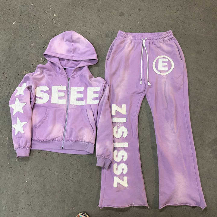 ชุดวอร์มมีซิปไหล่ผ้าเฟรนช์เทอร์รี่มีฮู้ดปักลายสำหรับฤดูหนาว
