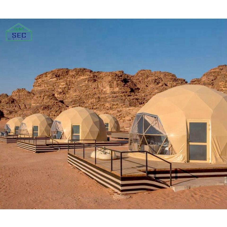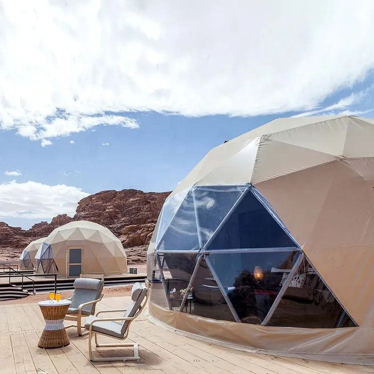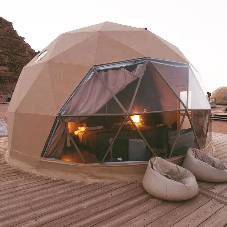 บ้านโดมสำหรับตั้งแคมป์กลางแจ้งแบบใช้ได้ทุกฤดู พร้อมหลังคาใส เตา และห้องน้ำ