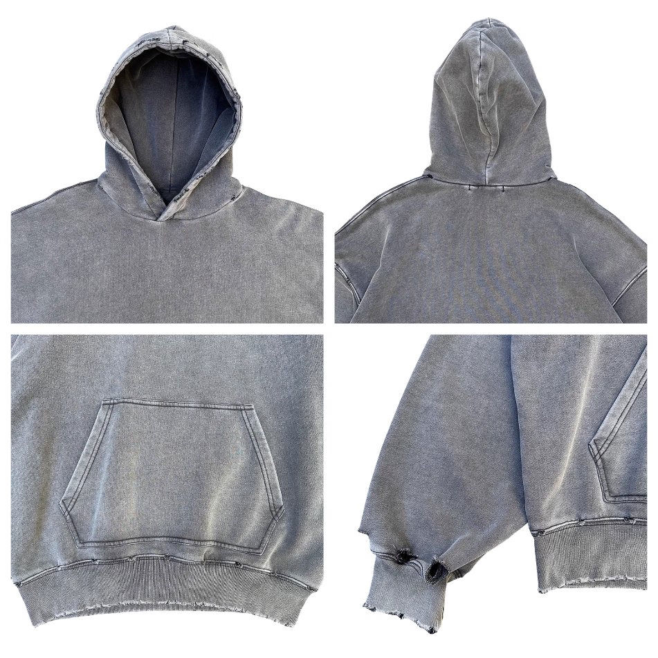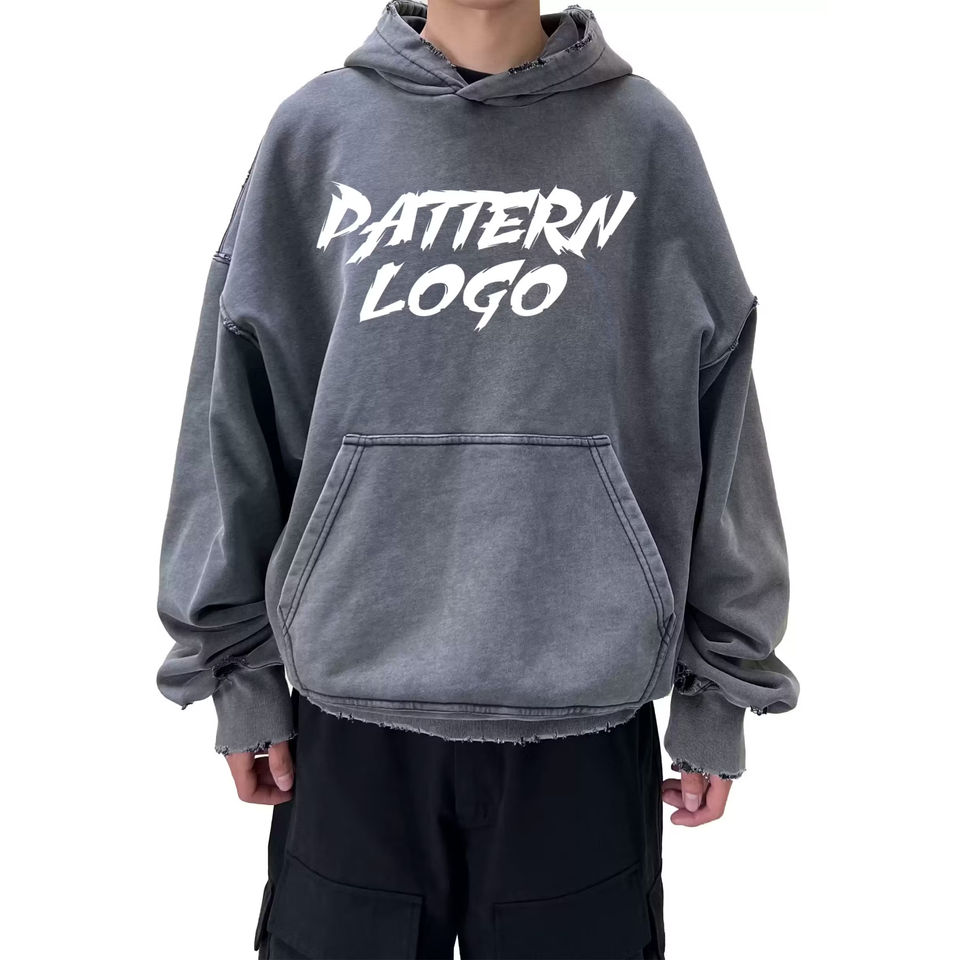 เสื้อฮู้ดดี้พิมพ์ลายดิจิทัลทรงปกติ ความยาวปกติ ผ้าฝ้าย 100% หนานุ่ม ซักย้อมแบบวินเทจ ลุคทำเก่า
