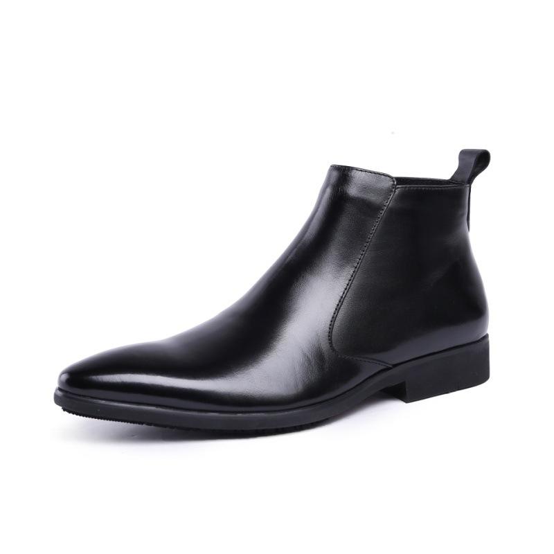 รองเท้าบูทเชลซีผู้ชายอบอุ่นในช่วงฤดูหนาว, รองเท้าหนังยาวถึงข้อเท้าพร้อมขนแกะหน้าและนิ้วเท้า