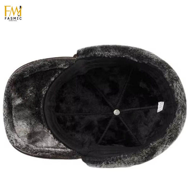 หมวกเบสบอลหนังแท้หนาขนรอบอบอุ่นสำหรับฤดูหนาวหมวกเบสบอลกันลมปรับโลโก้ได้สี่ฤดู