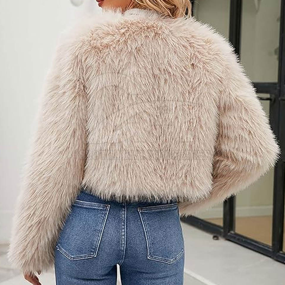 ชื่อสินค้า:เสื้อแจ็คเก็ตขนเฟอร์เทียมครอปสำหรับผู้หญิง