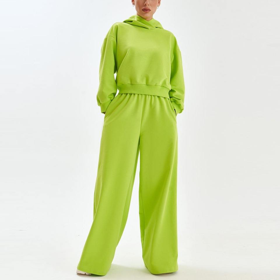 ชุดวอร์มผู้หญิงให้ความอบอุ่นในฤดูหนาวพร้อมโลโก้ของคุณ2025ชุดวอร์มกางเกงวอร์มทรงบานล้างกรดแฟชั่นใหม่ล่าสุด