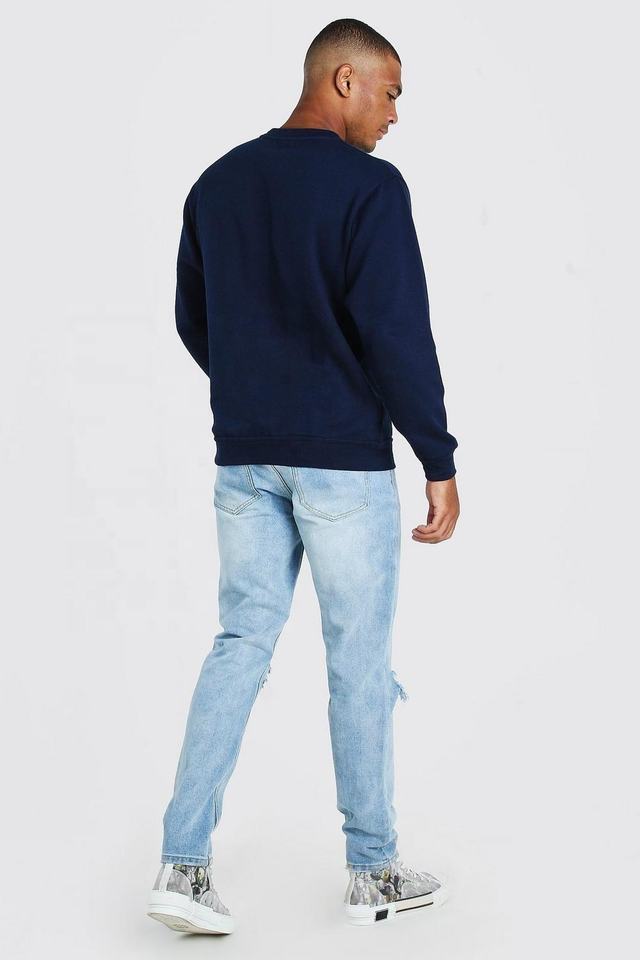 เสื้อสเวตเชิ้ตผู้ชายสีน้ำเงินกรมท่าสำหรับฤดูหนาว ผ้าฟลีซเนื้อนุ่ม โพลีเอสเตอร์/คอตตอน (ผลิตโดย Huzaifa Products)