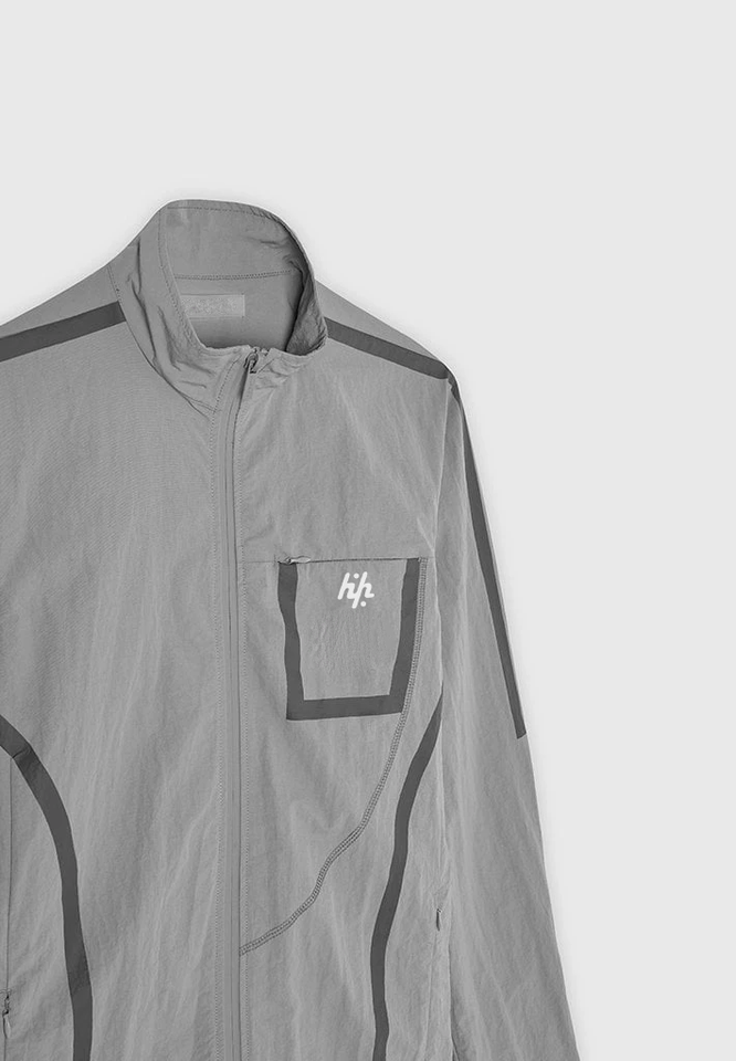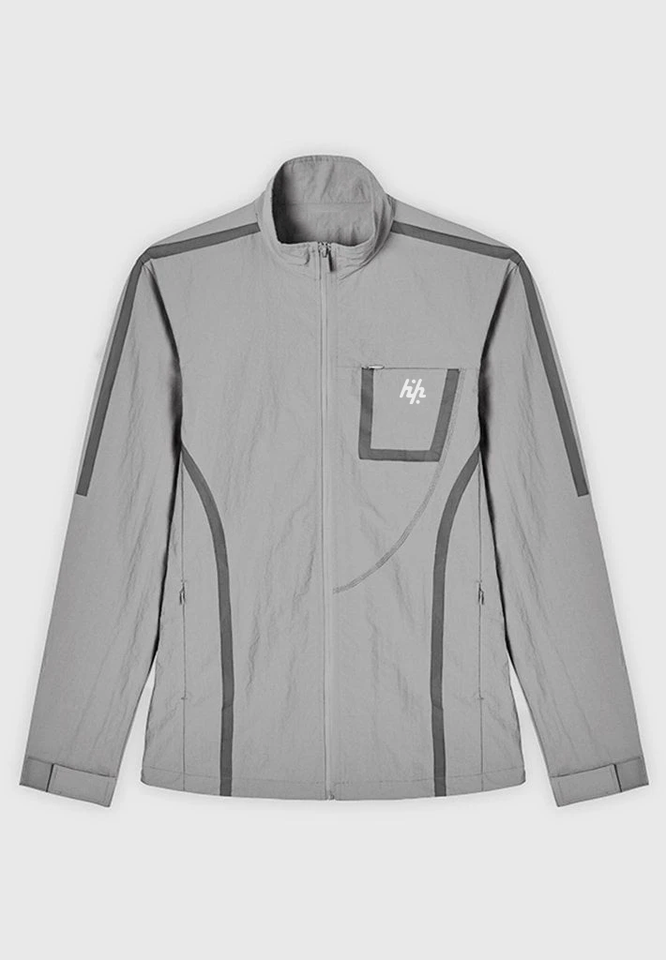 ชุดวอร์มสำหรับผู้ชายชุดวิ่งน้ำแข็งสีเทากันลมน้ำหนักเบาออกแบบได้เองโลโก้ออกแบบได้ตามต้องการผลิตภัณฑ์ huzaifa