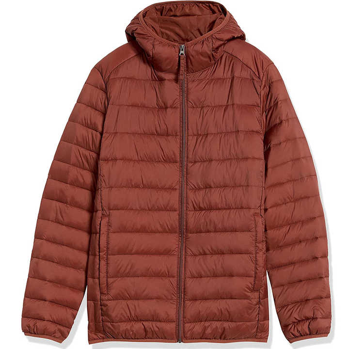 เสื้อแจ็คเก็ตพัฟเฟอร์กันลมกันน้ำมีฮู้ดอุ่นๆ เงาๆ บุด้วยขนเป็ด ผ้าฝ้ายออร์แกนิคใหม่ล่าสุด สำหรับผู้ชาย มีหลายสี