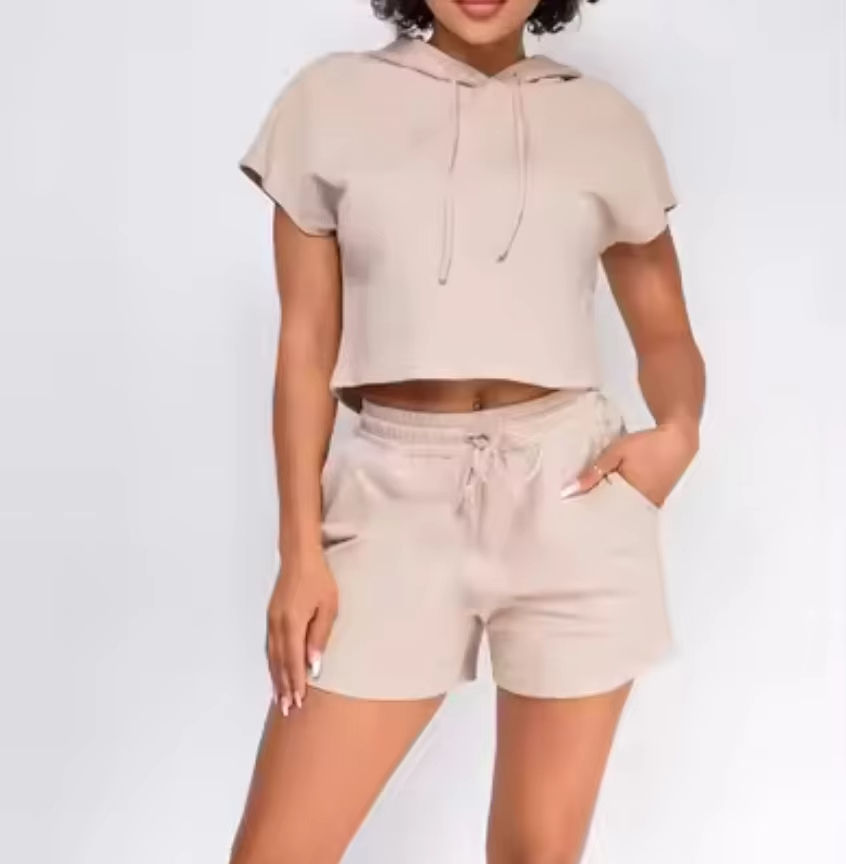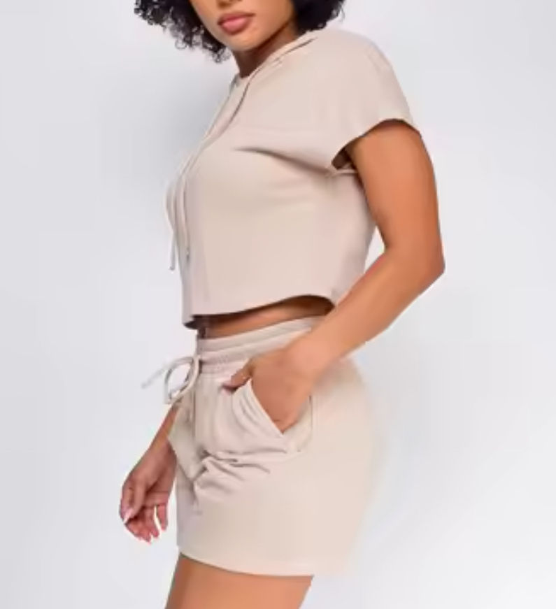 ชุดสั้นมีฮู้ดเสื้อครอปผู้หญิง
