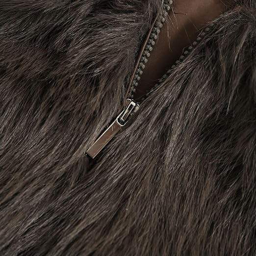 เสื้อแจ็คเก็ตผู้หญิงสำหรับฤดูหนาวแบบมีฮู้ด ขนสั้น ซิปหน้า ขนเทียม ขนฟ็อกซ์เทียม แขนยาว