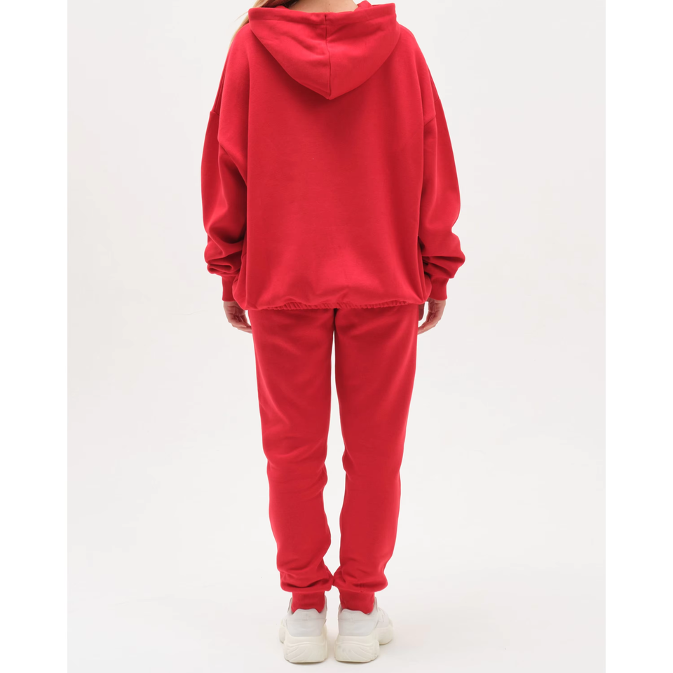 ชุดกีฬาลำลองสำหรับผู้หญิงไซส์ใหญ่สำหรับฤดูหนาว กางเกงขายาวด้านหน้าสั้นด้านหลังยาว เสื้อท่อนบน ชุดสองชิ้น ผ้าฝ้าย 100%