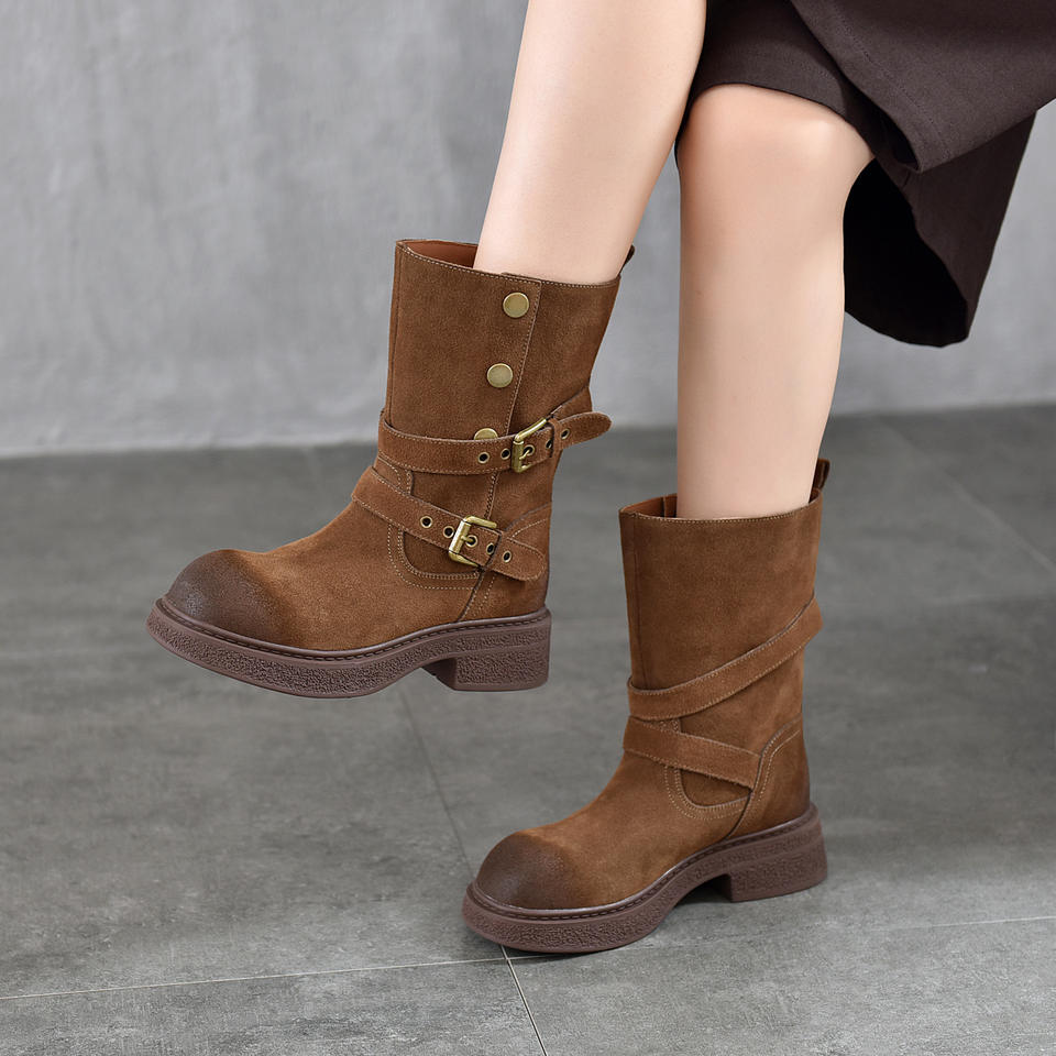 รองเท้าบูทหิมะผู้หญิงสำหรับฤดูหนาวบุขนอุ่นกันลื่นรองเท้าบูทสำหรับสภาพอากาศหนาวเย็นสไตล์วินเทจรองเท้าบูทมอเตอร์ไซค์ผู้หญิงรองเท้าบูทส้นสูงผู้หญิง