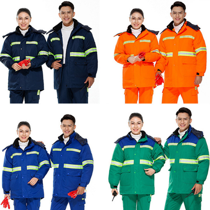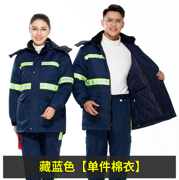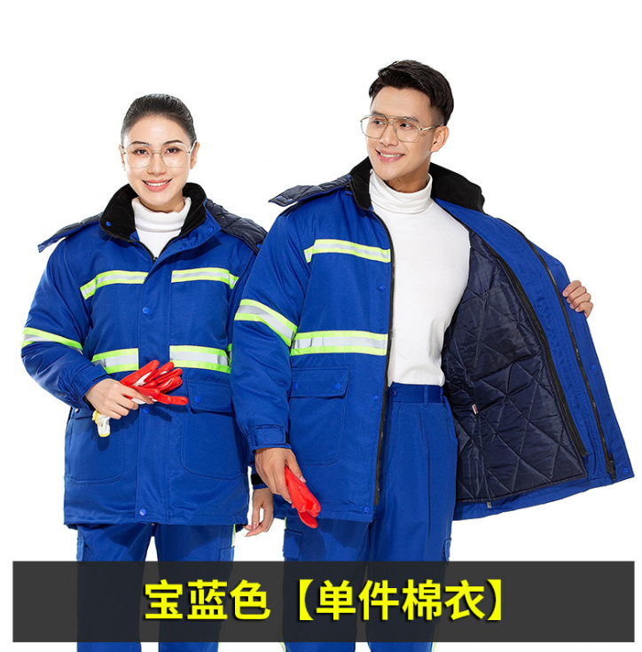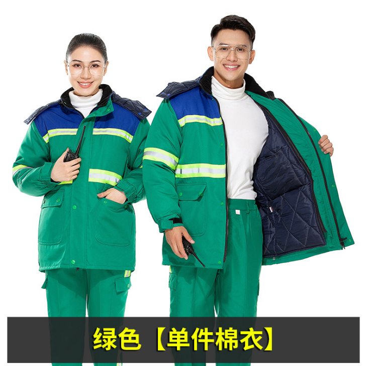 ชุดยูนิฟอร์มทำงานฤดูหนาวสำหรับงานสุขาภิบาล ชุดเสื้อแจ็คเก็ตและกางเกงผ้าฝ้ายหนานุ่ม ป้องกันฝุ่นและไฟฟ้าสถิต เหมาะสำหรับฤดูหนาว