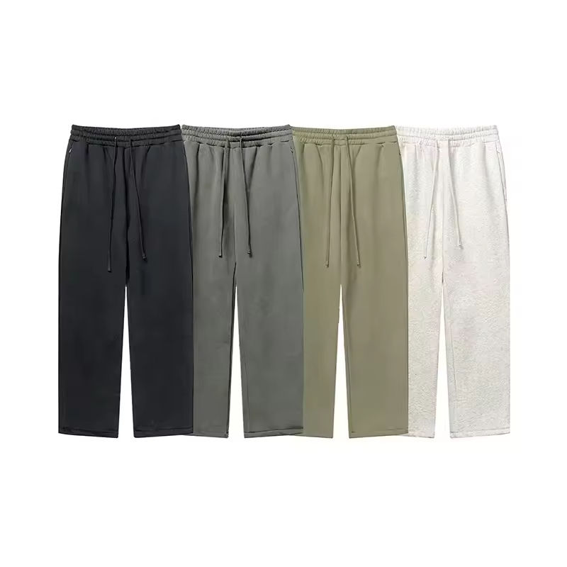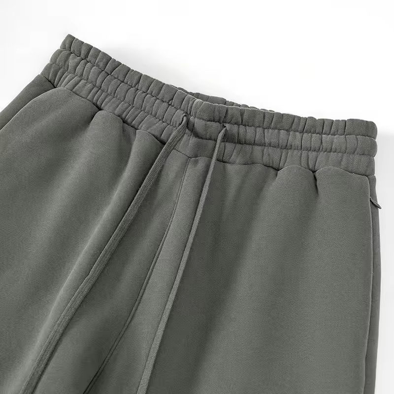 กางเกงวอร์มผ้าฟลีซเอวกลางน้ำหนักเบาสำหรับฤดูใบไม้ร่วง มีซิปและกระเป๋า สำหรับผู้ชาย สีดำ สีเทา ผ้าฝ้าย อุ่นสบาย