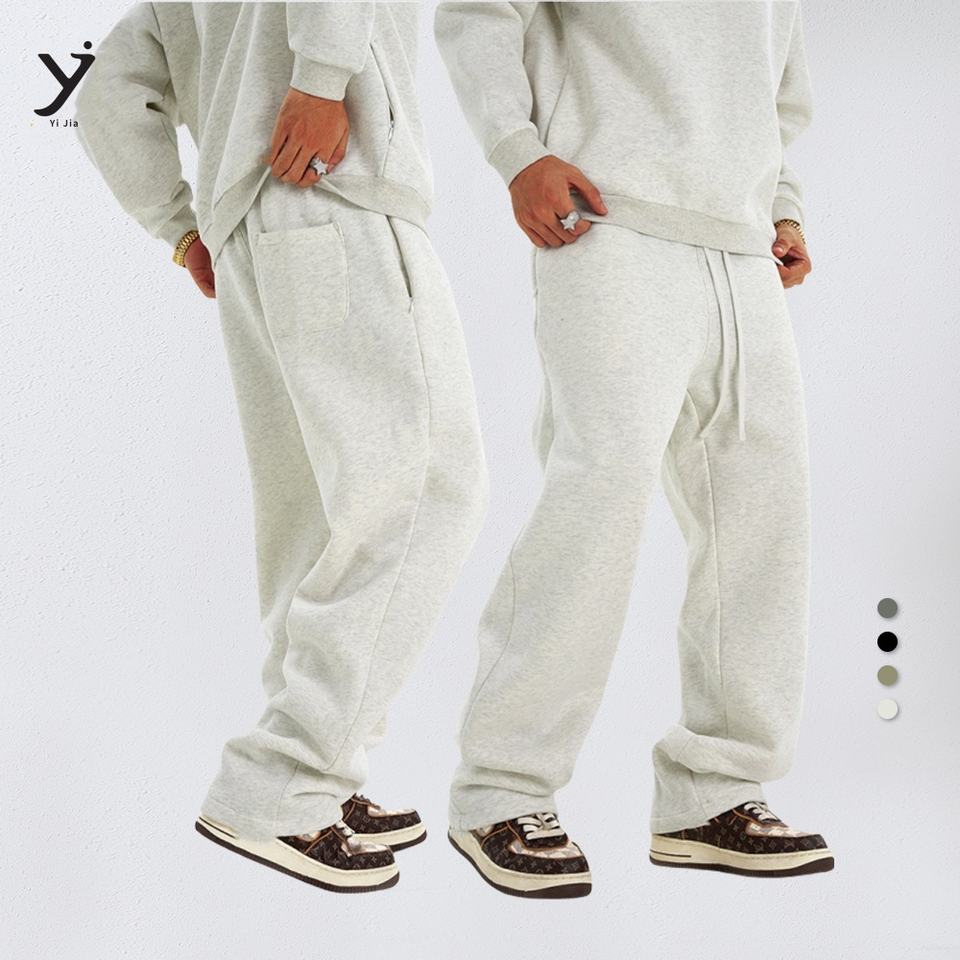 กางเกงวิ่งจ็อกเกอร์ฤดูหนาวฤดูใบไม้ร่วงพร้อมเอวยืดหยุ่นมีซิปทรงหลวมผ้าฟลีซถักตรงเข่ายาวสบายทันสมัย